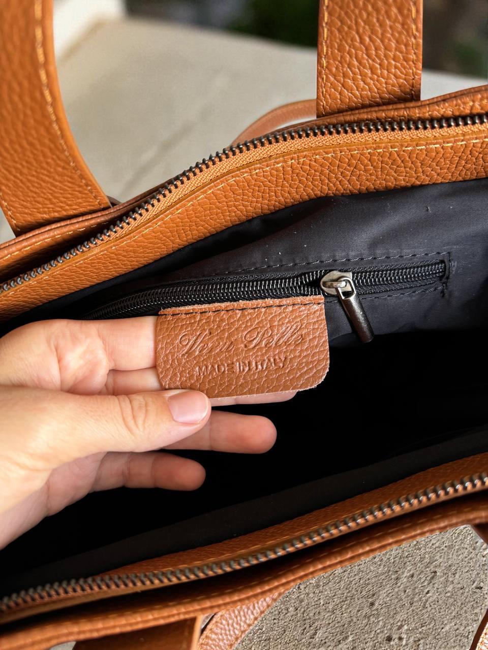 Large Leather Tote Cognac Brown Handmade Italian Shoulder